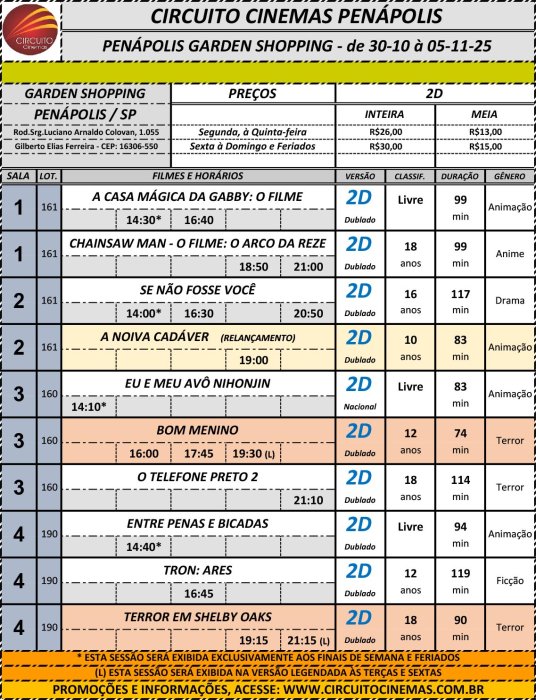 Circuito de Cinema Penápolis - Garden Shopping. https://www.circuitocinemas.com.br/26/atualiza_programacao.html ...