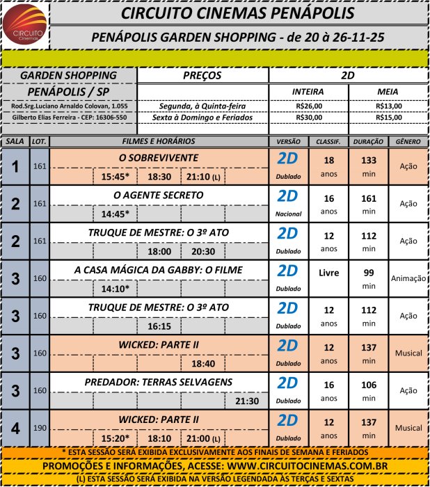 Circuito de Cinema Penápolis - Garden Shopping. Programação vigente de 06/11/2025 até 12/11/2025 https://www.circuit...