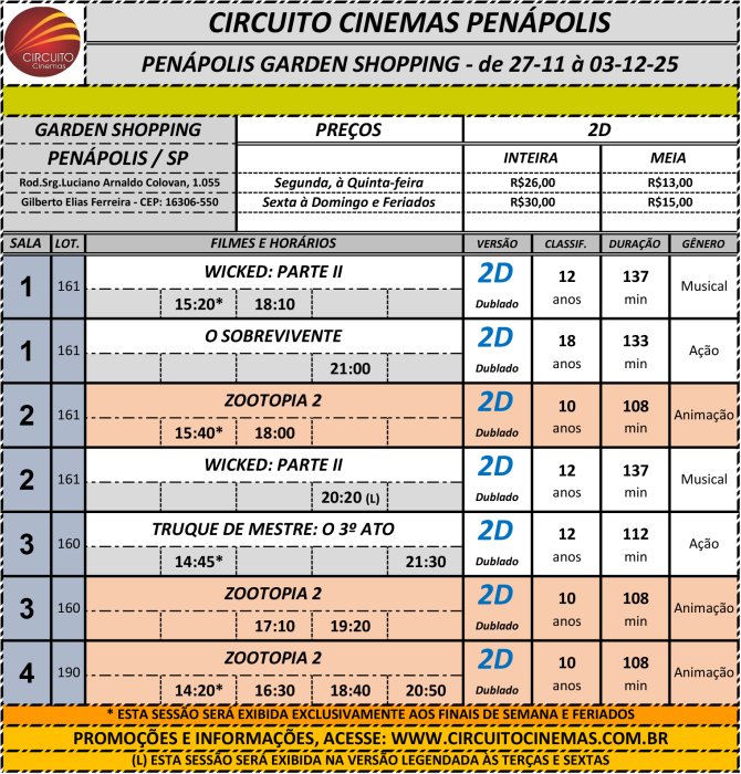 Circuito de Cinema Penápolis - Garden Shopping. Programação vigente de 06/11/2025 até 12/11/2025 https://www.circuit...