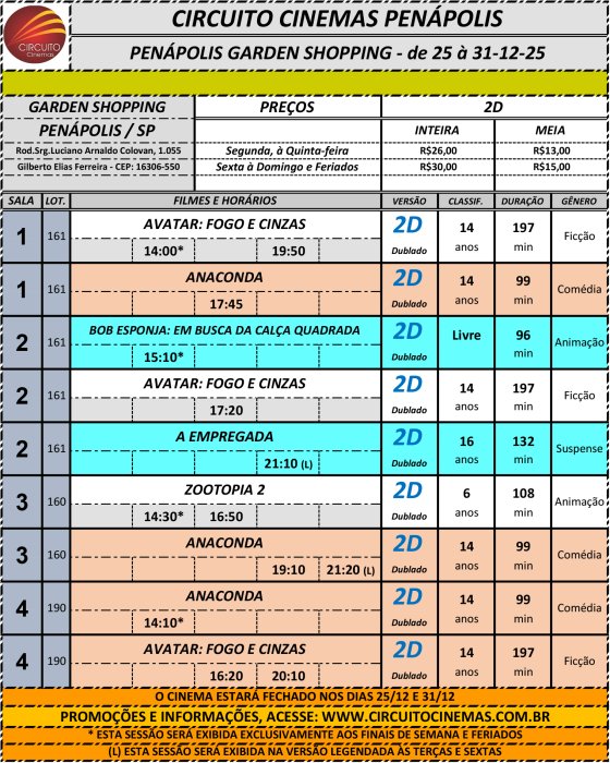 Circuito de Cinema Penápolis - Garden Shopping. Programação vigente de 06/11/2025 até 12/11/2025 https://www.circuit...