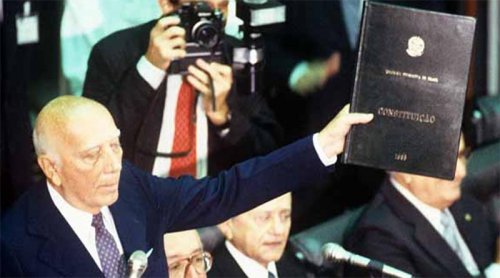 Fatos históricos do dia 5 de outubro Nova Constituição de 1988 No dia 05 de outubro de 1988, o presidente da Assembléia Nacional Constituinte Ulysses Guimarães (foto), promulga a nova Constituição brasileira. De maneira geral, a nova Constituição descentraliza o poder e devolve ao Legislativo a exclusividade de legislar, ao suprimir o mecanismo dos decretos-leis. 1582 - O papa Gregório XIII impõe o chamado calendário gregoriano,em substituição ao calendário juliano. 1789 - O povo parisiense invade o Palácio de Versalhes. 1796 - A Espanha declara guerra contra a...Quer ler essa notícia na íntegra? Assine o Diário!