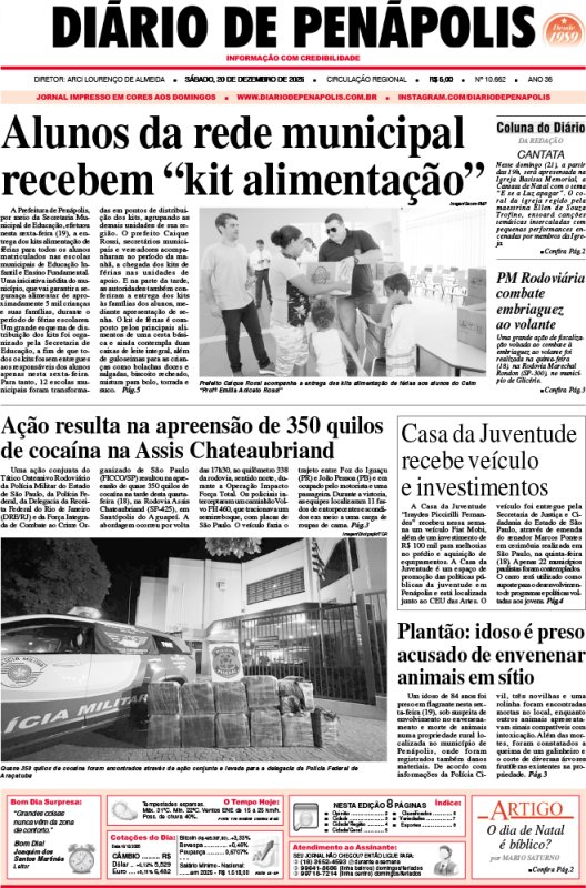 Capa do jornal DIÁRIO impresso deste sábado (20)